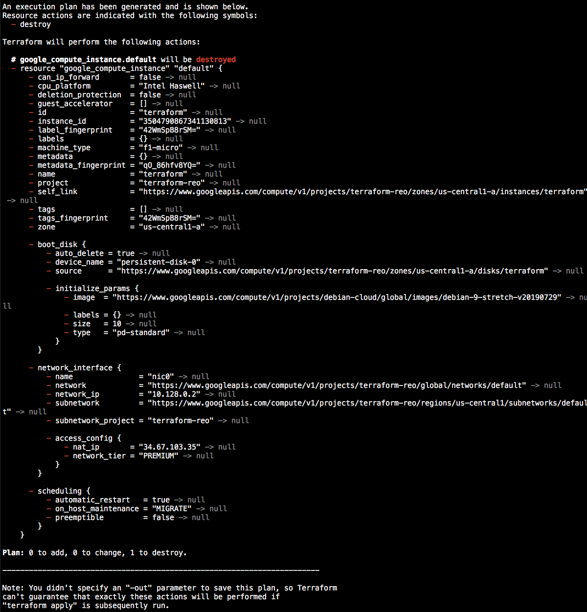 plan 명령어에 destroy 옵션으로 어떤 리소스들이 제거될지 확인할 수 있다.